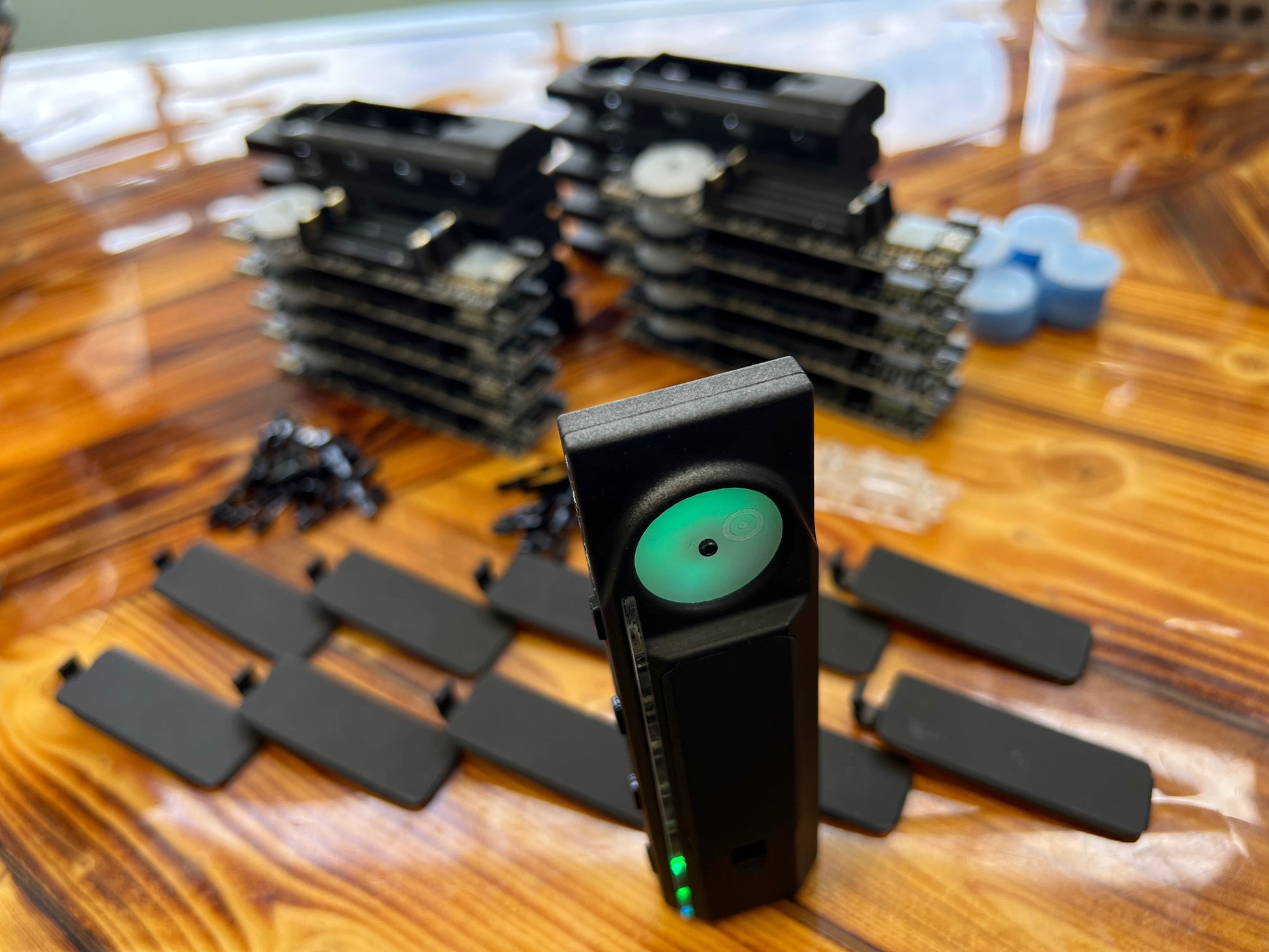 Long answer: When you buy a remote, you get the choice of a private or public frequency. If you choose public then your props and remotes will be on the same frequency as every other public remote/prop (flash mob with 20 perfectly synched helmets anyone?). If you have a public frequency and someone else is already broadcasting, why not make a friend and you can take turns controlling the animations :D. if you choose a private frequency then your remote broadcasts a unique code that only your props can understand. Got questions? reach out :D